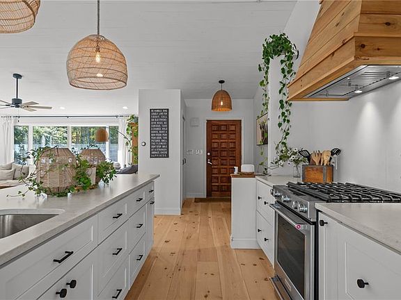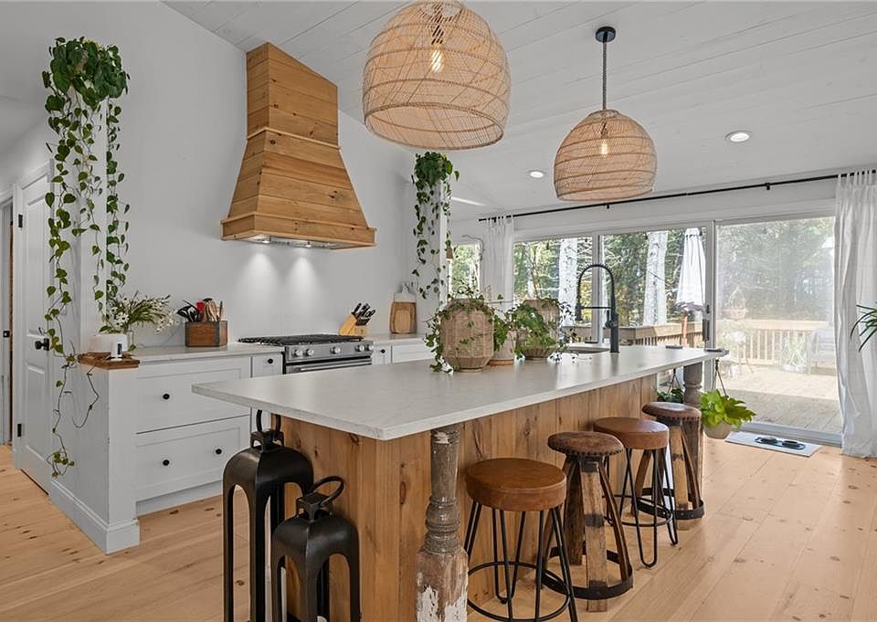 Experience the perfect blend of privacy, comfort, and New England charm at 33 Slavin Path. Set on nearly five secluded acres just 1.5 miles from downtown historic Chepachet, this beautifully remodeled 3 bed 2 bath home offers a peaceful retreat surrounded by nature. Inside, light natural hardwood floors and expansive picture windows fill the home with natural light, while a cozy brick fireplace anchors the living space with warmth and character. The open-concept living and dining areas flow seamlessly, ideal for entertaining or relaxed everyday living. The primary bedroom features a private ensuite, creating a serene retreat within the home. The stunning kitchen takes center stage with an elegant design featuring quartz countertops, a large island, modern cabinetry, and a custom wooden range hood. Step onto the expansive deck to enjoy serene woodland views and sunrises over your private retreat. Outdoor enthusiasts will appreciate the walking and dirt bike trails winding through the property, while the two-car garage provides convenience and storage. With thoughtful updates, timeless design, and a tranquil setting just minutes from local shops, cafés, and restaurants, this home offers a rare opportunity to experience modern living in perfect harmony with nature.