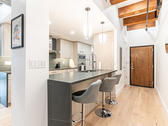 Experience elevated urban living in this stunning 3-bed, 2-bath corner unit at 33 Sleeper St #409—fully gutted and rebuilt in 2022. Bathed in natural light from oversized windows on two exposures, this reimagined home blends brick-and-beam charm with contemporary finishes. The open layout features engineered hardwoods, recessed lighting, custom closets/shelving, and marble sills throughout. A designer kitchen boasts Bosch appliances, sleek cabinetry, and dramatic black quartz counters & backsplash. Spa-like baths include floating vanities; the primary adds a heated tile floor. Conveniences include in-unit laundry and an 80-gallon hot water heater. Steps to Seaport Blvd, you’re in Boston’s most vibrant neighborhood—near dining, shopping, nightlife, and the harbor. Seller offers one year of complimentary rental parking at One Sleeper St for any buyer closing by 12/31/2025.