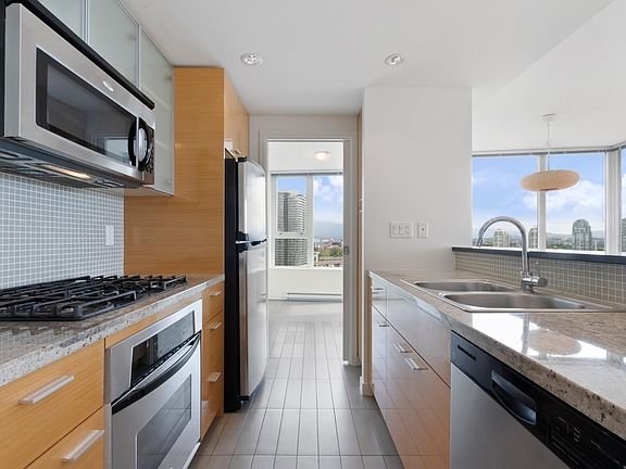 This residence offers you modern West Coast Chic and sweeping views over False Creek to Metrotown and as far as Mt Baker. Unwind at Esprit City Club's spa-like amenities or work up a sweat in the gym or the ten-pin bowling lanes. Should you prefer the outdoors, take out a kayak, walk, run, cycle or blade the seawall. You are only steps away from trendy restaurants, great shopping, sports venues & entertainment. The unit comes with 1 parking stall. Small pet okay upon approval. **Any storage locker and parking stall measurement/size to be verified by prospective tenants if applicable.**