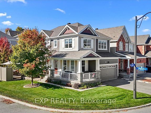 You haven't seen one upgraded like this- over $100k spent inside and out, from ceilings to trimwork to custom blinds- all carefully chosen in quality finishes. This 3Bed + upper loft/3 Bath is located on a CORNER lot with a wraparound porch (with anti-skid epoxy finish) and double car garage. Spacious entrance leads to open concept main floor with 9 foot smooth ceilings, beautiful hardwood floors, cultured stone fireplace and an abundance of natural light. Luxury kitchen features upgraded cabinets with quartz countertops, updated backsplash, stainless appliances and island with additional space for seating. Adjacent dining area is bright and spacious. French door leads to your professionally landscaped yard, featuring extensive interlock landscaping, a deck with gazebo, easy perennials, an underground sprinkler system, and a convenient shed. Fully fenced yard completed in maintenance-free PVC fencing. The upstairs loft is a perfect flex space- use as a family room, home office or fitness area- or add another bedroom. Spacious primary bedroom with large walk-in closet and stunning oasis ensuite boasting a double vanity with quartz countertop, walk-in oversized glass shower, a standalone soaker tub, and an Ecoway smart toilet/bidet. Secondary bedrooms are also a generous size. A full bath and upstairs laundry with additional cabinetry completes this level. Basement is purposefully finished to allow functional usage; offering a seating area, a dedicated workshop/office space, a studio/craft room with sink, and a bathroom rough in framed and ready for you to install. Close to schools, parks, shopping, transit and NCC trails.