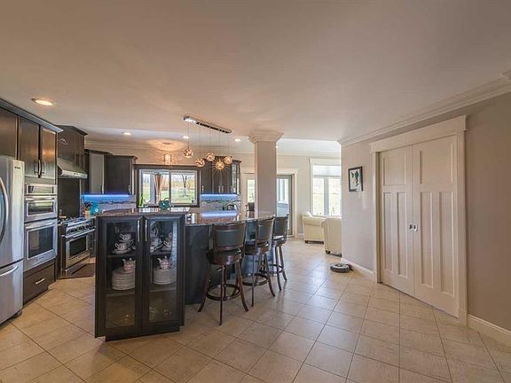 Welcome to your dream home! This exquisite estate is a masterpiece of luxury and elegance, offering unparalleled comfort and sophistication. Nestled amidst hundreds of planted trees and perennials, this 12-bedroom, 10-bathroom residence sits on 3 acres and epitomizes refined living with flexible arrangements. The grandeur of this home is evident from the moment you step through the door. High-end finishes and thoughtful details abound, create a warm and inviting atmosphere throughout. The expansive floor plan includes two separate living areas, with a wheel chair accessible main floor, providing endless possibilities. Live in the main house and rent out the other side for additional income, or accommodate extended family with ease. Both living spaces feature multiple living areas, perfect for intimate family gatherings and large-scale entertaining. The gourmet kitchen in the main living area is a chef's delight, featuring top-of-the-line appliances, custom cabinetry, a spacious island and a butlers pantry with an additional stand alone fridge, freezer and dishwasher. A pass-through window makes clean up an ease when hosting friends and family around the custom built living room bar. Adjacent to the kitchen, the elegant sun room offers stunning views of the massive back yard and direct access to one of the two covered patios. The luxurious master suite is a private oasis, boasting a spa-like bathroom with a huge jetted tub, walk in closet and the most beautiful wrap around shower you've ever seen. Each additional bedroom is generously sized and beautifully appointed, ensuring comfort for all family members and guests. Additionally, the property boasts a massive attached shop, meticulously organized to be the ideal man cave, with a 12' o/h door, mezzanine and a third suite with it's own laundry, bathroom and kitchenette. Outside, the covered patios provide the perfect setting for al fresco dining and relaxation, surrounded by the natural beauty of the property. With 4 garages, over an acre of gravel with a pass-through driveway there is endless parking and storage around the property. This exceptional estate is more than just a home; it's a lifestyle.
