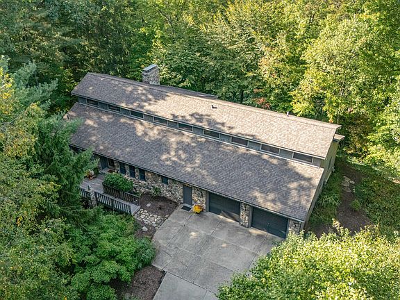 Discover this stunning 4-bedroom, 4 bathroom custom-built home offering over 3,800 sq ft of finished living space on a private, wooded acre lot. Surrounded by mature trees, this residence combines natural beauty with exceptional craftsmanship. Inside, you'll find incredible custom wood finishes, a soaring stone fireplace stretching floor-to-ceiling, exposed wooden beams, and dramatic open ceilings. The open layout includes a large kitchen island w/ quartz countertop that flows nicely into the spacious dining area and living room, office/flex space connected to the primary suite, and abundant storage in the basement. Cherry and ash doors throughout. A versatile in-law suite sits above the garage w/ a bedroom, bath, kitchen and private entrance perfect for hosting. Floating stairs add modern elegance, while the wooded setting creates a peaceful retreat—just minutes from the highway and 10 minutes from downtown GR for ultimate convenience.