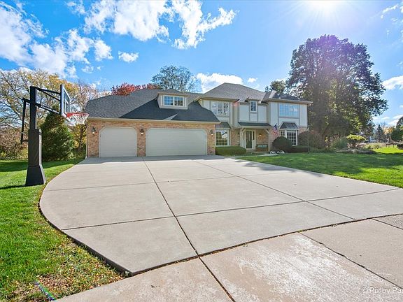 Captivating 2-story home in a quiet cul-de-sac in the Aintree subdivision offering 4 bedrooms, 2.2 baths, private den, full finished basement and attached 3-car garage. This beautifully maintained home starts with curb appeal and a lovely front porch. Step inside the bright foyer, to one side is a spacious living room and to the other side is a private dining room both with big bay windows and carpet. Pass through the dining room to the great family room with volume wood ceiling, 3 skylights, a floor to ceiling brick fireplace and glass sliders that lead to the big patio. Steps away is the gourmet kitchen with ample cabinets and granite countertops, center island, stainless steel appliances, pantry and eat-in area with another bay window. A private den, powder room and laundry room with cabinets, utility sink and exterior access completes the main level. Upstairs is the master retreat with volume ceiling, sitting area, walk-in closet and luxurious ensuite bath with soaking tub, separate shower with built-in seating, double sinks and skylight. 3 additional sizable bedrooms with large closets and carpet, a full hall bath with shower over tub combo and a roomy loft rounds out the upper level. Head downstairs to an open rec room, game area and dry bar perfect for entertaining. Completing the lower level is a powder room, extra storage room and cedar closet. Your own oasis awaits outdoors with 2 brick paver patios, one with a lovely pergola, a great garden, gravel area perfect for a firepit and an abundance of lush greenspace surrounded by shady trees. Walking distance to some schools and parks and nearby the Fox River and downtown St. Charles with endless shopping and dining! Value-added features: (2025) Water heater, 2 sump pumps + battery backups, fridge, dishwasher, some light fixtures, painted fireplace; (2024) Master bath shower door, some interior painting, basketball hoop; (2022) Roof; (2018) Water softener, microwave; (2015) 2 ACs, 2 furnaces, humidifier, oven, disposal, granite counters, some flooring.