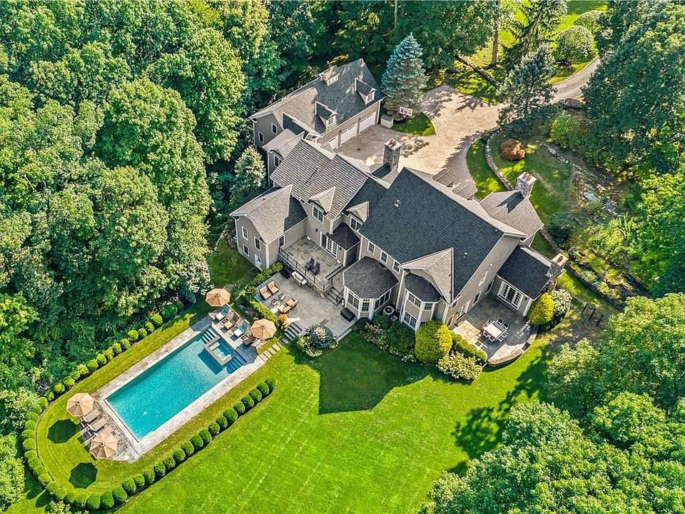 Expansive Colonial provides all the amenities for today’s lifestyle. A private cul-de-sac street leads to this expansive Colonial with 4 pristine landscaped acres, a pool/spa and extensive patios. The large courtyard segues to the entry foyer with formal spaces set apart from the more intimate living areas. A grand formal dining room offers seating for many while the living room and library, each with fireplace, provide gathering and conversation. A gourmet kitchen with island and breakfast room leads to the family room and home theater. The primary suite, with fireplace, offers large double walk-in closets, a steam shower and jetted tub. A private one-bedroom guest suite with full bath is accessed via its separate entrance. The lower level walks out to a glorious pool and offers a spacious rec room, gym, yoga studio and large steam room. Conveniently located between the towns of Bedford and Armonk. A perfect setting, 50 minutes to NYC. Additional Information: Amenities:Guest Quarters,HeatingFuel:Oil Above Ground,ParkingFeatures:3 Car Attached,
