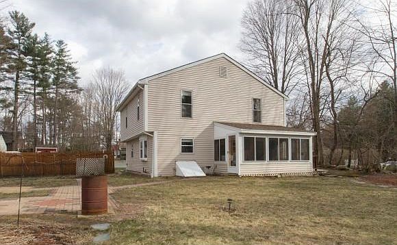 Find your happy place... Take a look at this 3 bedroom Colonial at the end of this quaint little tree-lined street. Located right out side Derry's downtown and a short walk to Parkland Medical, you can't ask for a better location. Priced in the sweet spot, you'll be surprised at what this home has to offer. End of the road lot with many extras including: nearly 1800 sq/ft, new 3 season room, large kitchen, shed, 3 bedrooms and a 4th room upstairs which could be an office, large walk-in closet or additional bath. 2nd floor has a massive master bedroom option with private entrance from deck. Great flat yard, public utilities and more. Get more bang for your buck...
