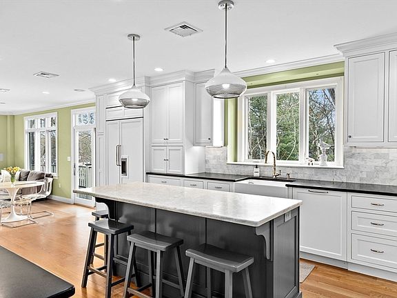 A most stunning renovated 5 bed 4.5 bath Newton Centre Colonial awaits its next owner! 33 Sunhill Lane is a perfect blend of classic charm and exquisite updates, featuring an open concept layout that highlights a beautiful kitchen w/Wolf & Sub-Zero appliances, a nice island & elegant cabinetry. Perched atop a cozy cul-de-sac enjoy spectacular sunsets & views from a sunny family room that opens to both balcony & patio. A traditional DR & serene fireplaced LR are perfect for entertaining. A gorgeous primary suite offers a spa-like full bath, large walk-in closet, & private outdoor deck. 4 additional BRs are spacious in size, 1 of which includes a full bath w/shower ideal for guests or Au Pair. The 2nd floor is home to both W/D for added convenience. Other features include HW floors throughout, a finished lower level w/FP & full bath, plus a 2 car attached garage. Located near great shopping, parks, major highways and top rated schools don't miss the chance to make this home your own!
