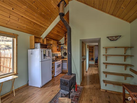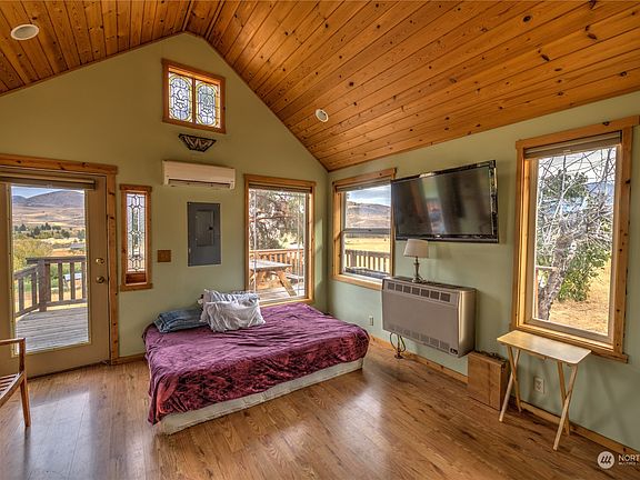 1 bdrm, 1 bath cabin with sleeping loft, and bonus room. Vaulted ceiling with both wood free standing stove, propane wall heat, and mini splits for heating and cooling. Enjoy the glorious outdoors from the decks with ample entertaining space. Fenced garden area, and storage sheds. Large 20 acres has two sides bordering vast public lands of Washington State Fish and Wildlife. Recreation abounds for hiking, biking, and riding right out your back door. Secluded dead end street with picturesque views of the meadow framed by the hills surrounding the beautiful Methow Valley.. Sweeping grasslands with abundant wildflowers in a pastoral setting. Versatile as full time or part time retreat with easy year round access. A hard to find opportunity.