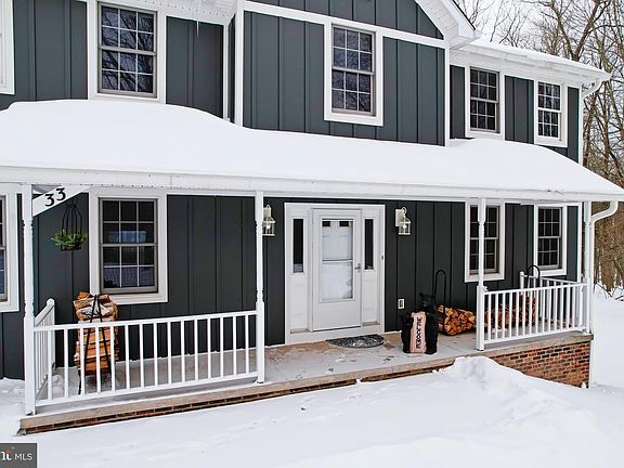 33 Teaberry Ridge Road sits on a beautiful 3-acre wooded lot in the middle of desired Bluelick Commons, located in Avilton, roughly 30 minutes to Deep Creek Lake and 10 minutes to Grantsville. Just 2 miles off interstate 68 makes this property conveniently located for commuting. This property offers rustic living in a country setting bordering Savage River State Forest. Beautiful 4 bedrooms and 2.5 bathes with spacious great room (13'6" x 25'2") and kitchen island. L shaped stairs with covered front porch and front door, sidelights also boasting an extra-large two car garage. Better than new updates include James Hardie Smooth Plank "Statement Collection" Board & Batton Iron Gray color siding (fiber cement) with James Hardie Artic white trim covering the entire home. A new GAF Timberline HDZ shingle roof, color charcoal. Newly installed upgraded 6" seamless gutters with 3" x 4" downspouts and Gutter RX gutter guards which are American made aluminum inserts designed to fit securely into gutter, weathering even the heaviest storms with ease. Also, newly installed upgraded vinyl vented soffit to all overhangs and front porch. Recently installed hardwood flooring was upgraded in Great room and Dining room and new carpeting installed on stairway and entire upstairs hallway and bedrooms. Additionally, each upstairs bathroom has new laminate tile installed. The kitchen, foyer and half bath flooring consists of upgraded ceramic tile. The home features an oil hot water baseboard heating system providing cozy warmth for crisp Garrett County weather, and a beautiful wood burning fireplace is found in the Great Room an extra upgraded insulation to the entire house. A large heated and unfinished full basement currently used for storage, laundry room, and workout room/gym with walkout door leading to the back yard, could be easily converted into living space. Outside, enjoy a heated 16 x 34 fiberglass San Juan in-ground pool, Atlantic model, with pool shed , privacy fence and landscaping. An additional 10 x 12 shed is located on the property for storage , as well as a split rail wooden fence at the property boarder. This beautifully maintained 3-acre property sits on a corner lot with a level driveway consisting of a variety of mature hardwood trees, as well as having a manicured lawn ideal for outdoor enthusiast. The house is 40' x 26', the great room is 13'6" x 25'2", the master suite is 13'8" x 16'5" w/ walk in closet 6'8" x 8'5", Bedroom #2- 14'0: x 10'2", Bedroom #3- 11'5" x 12'3" , Bedroom #4- 13'5" x 9'6" and the Garage is 24" x 28". This property has so much to offer! Call today to schedule a tour!