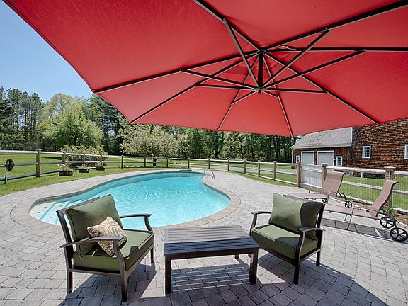 Get ready to be charmed with this beautiful farmhouse set on 3 sprawling acres with fruit trees, extensive landscaping, and potential as a horse property. Home interior marries historic character with modern amenities. Boasts a brand new kitchen with granite countertops, large island, and state of the art appliances. Host friends and family in the fireplaced living and dining rooms, surround sound system, beamed ceilings & wide pine floors. Relaxing sunroom offers views of the pastoral backyard. Entertain outdoors around the inground pool with new brick patio, fence and solar lighting. Renovated 2-stall barn offers large 2-car garage with finished game room or office above.There is a separate cottage/guest house. Set within East Boxford's Historic District, abutting park and walking distance to Boxford Community store. Part of the sought-after Masconomet school district. All the work has been done - there is nothing to do but move in and enjoy! Come see for yourself!