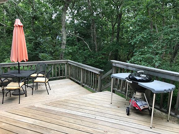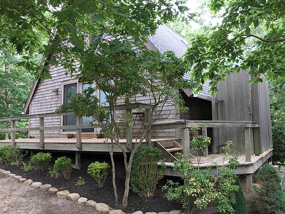 Comfortable and Efficient! Off the bike path and not far from Edgartown this 2+ bedroom A-Frame is packed with space and charm. Multiple living areas allows for spacious living while creating a cozy atmosphere. The requisite outdoor shower, private deck overlooking the tranquil backyard, and established plantings provide the perfect island get away! The second bedroom is located on the second floor featuring skylights offering views of the sky and starlight.