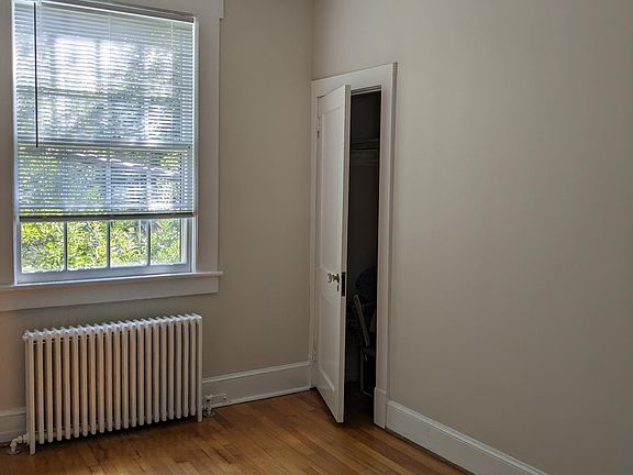 Freshly painted one bedroom apartment; wood floors, high ceilings (with ceiling fans), plaster walls, air conditioning. Large windows on three sides of the apartment -- bedroom overlooks the back yard. No property closer to central grounds. On street parking with $25 permit from City Hall. University Circle is a quiet, one-way street, one block from Rugby Road, with easy access to the University bus line and as noted, central grounds and the corner. The apartment is at the end of a row of three apartments and therefore shares only one wall with another apartment -- it is a quiet place to live. LEASE TERM: PARKING: On street parking by permit through City Hall $25 annual fee; off-street parking may be available for a fee UTILITIES: Tenant is responsible for electric and internet services. Water, sewer and gas (for radiator heat and hot water), provided by City of Charlottesville, are billed to the Landlord; tenant pays a flat monthly fee to pay these bills. At lease end, Landlord calculates the actual cost of these utilities and either refunds monies that were not spent or collects from the tenant if the bills exceed what the tenant paid through the lease term. Landlord does not add an administrative fee. PETS: No pets No smoking or vaping. NUMBER OF Occupants: One