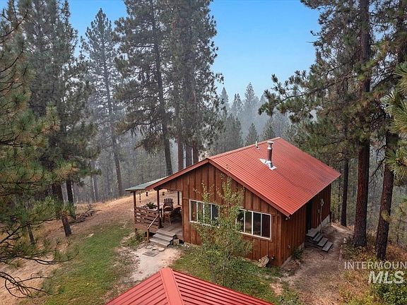 This quaint cabin offers an idyllic escape with fantastic views of Scott Mountain and Castle Mountain. Enjoy the peace and quiet of this private location, with a functional kitchen and dining area perfect for preparing and enjoying meals. Cozy up by the propane fireplace in the living room and take in the beautiful scenery from every window in the two bedrooms. Relax on the covered porch or in the separate enclosed porch area, and gather around the built-in fire pit for evenings under the stars. With underground utilities and a Kinetico water system, this low-maintenance property offers convenience and comfort. NO CCRS!! NO HOA! Explore the nearby forest service land with trails for ATV rides and snowmobile adventures. The detached garage provides storage space for vehicles and equipment. With 2.88 acres of land, there is plenty of room to expand and customize the cabin to suit your needs. Don't miss out on this opportunity to own a peaceful retreat in a stunning mountain setting.