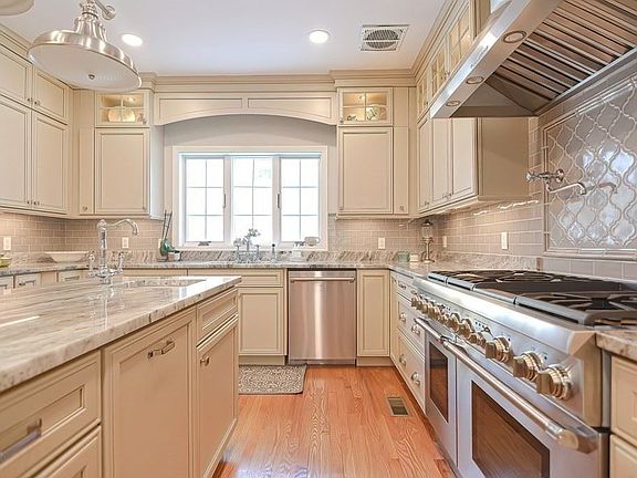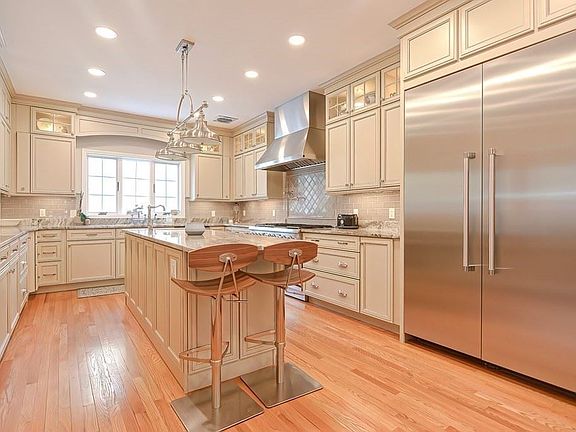 Young custom built colonial features spectacular 2018 top-of-the-line kitchen! Miles of tasteful cabinetry and huge center island are complimented by the 6 burner Thermador range with double ovens, built-in Gaggenau coffee/espresso station and more! Entertaining is a breeze in the open concept kitchen/family room and massive dining room. On the second floor you will find four generous bedrooms including the primary suite with spacious master bath. The third floor delivers a punch with full bath and a flexible layout including a bedroom or office plus media room. You will find high ceilings through out and a two-car garage. Enjoy sounds of nature and peaceful woodland views from the rear deck. Potential for even more space in the unfinished lower level. All this tucked away on a quiet cul de sac abutting conservation land, yet with easy access to all major routes.