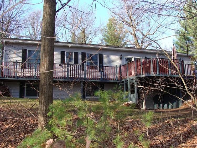 Meridians Schools-very private hillside setting with 4.2 acres of woods. Home has 4 bedrooms (3 with the extra in the basement),walk-out basement and city water. Garage 40 x 28' is heated and insulated.The garage has attached cold storage of 12 x 40 and 16 x 24approx.(building has total of 1984 square feet)Sort of like a garage and a pole barn.