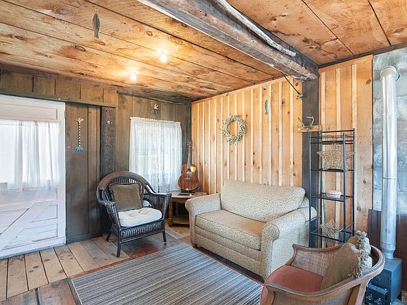 Welcome to the “Love Shack,” a rustic riverfront cabin nestled along the banks of the West River in the heart of South Londonderry, Vermont. This one-of-a-kind retreat offers a rare chance to unplug and embrace the simple joys of cabin living while staying close to everything southern Vermont has to offer. Located just six minutes from Magic Mountain and within easy reach of Bromley, Stratton, and the Green Mountain National Forest. The main level features a cozy living room and a compact yet functional kitchen with a propane oven and range, dining area, propane stove, and an electric fireplace that adds warmth and ambiance. Off the kitchen is the bathroom, outfitted with an electric Incinolet incinerating toilet, a clever solution for off-grid living. Upstairs, two sleeping spaces with built-in closets providing a restful retreat. While the cabin has electricity, it invites a more self-sufficient lifestyle and creativity with water use. Step outside to enjoy the wraparound deck overlooking the river—a peaceful spot to sip your morning coffee or unwind after a day on the slopes or trails. Walk to the Corner Market & Deli for coffee, sandwiches, and sundries, or bike to the West River Trail. Wade into the river, cast a fly, or simply relax as the water flows by. The property is classified by the town as a camp and has no running water or septic/sewer. Being sold as-is. Motivated seller—bring all offers and make this riverside hideaway your own.