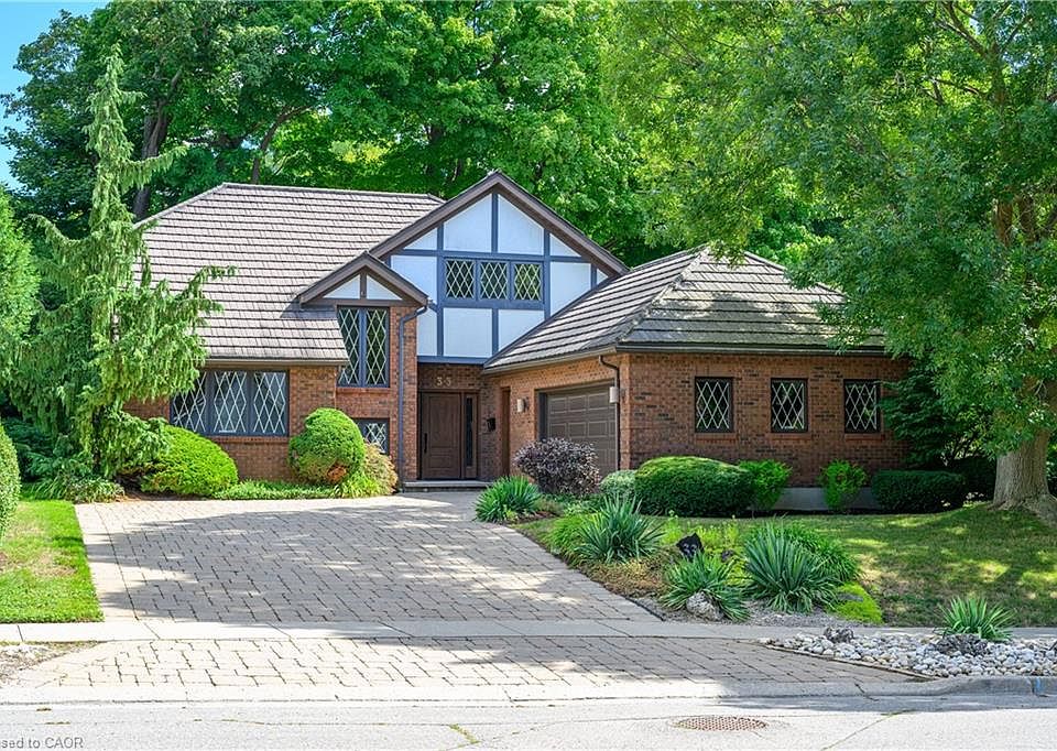 Welcome to 33 Walnut Drive, a timeless Tudor-style residence, custom designed & built in 1984 for the original family who has lovingly maintained it ever since. Offering over 4,800 sq ft of thoughtfully designed interior space, this home is a true blend of character, craftsmanship, & comfort. Every detail has been carefully curated to exceed expectations. From the moment you arrive, the curb appeal is undeniable - a stone walkway, mature trees, & professionally landscaped gardens create a picture-perfect first impression. Step inside to a gracious entry way & grand two-story living room featuring soaring ceilings, striking fireplace, & views of the enchanting backyard. The dining room offers serene vistas of a cascading waterfall & includes a walkout to the private oasis with lush gardens & an expansive deck, ideal for entertaining or peaceful mornings with coffee. The chef’s kitchen includes a generous eat-in area & opens to the family room, creating a warm, inviting space for gatherings. The main-floor primary suite is a private retreat, complete with walk-in closet & luxurious ensuite. Also on the main level is an executive office featuring custom millwork & built-in shelving, ideal for working from home. Upstairs, you'll find 3 additional spacious bedrooms, full bath, & a bright open loft, ideal as a secondary office, studio, or playroom. The lower level offers a large recreation space ready to be customized into a games room, home theatre, or gym. There is ample storage throughout. Additional features include double garage with inside access, main floor laundry, steel roof, 200 AMP service, new furnace & A/C. Ideally situated in an established neighbourhood, walkable to shops & top notch schools. Floor plans & construction specifications, which exceeded standard building codes, are available upon request. Offered for the first time, this home has been the setting for a lifetime of memories. Now, it's ready for you to begin your own chapter.