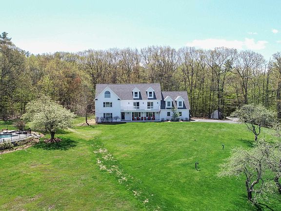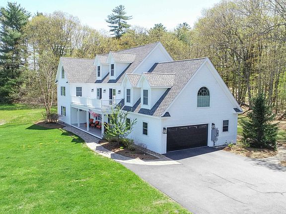 Open House Cancelled. Enjoy the spectacular long-range views of the White Mountains Presidential Range and Lake Winnipesaukee from this stunning 3-level home. This home was completely rebuilt, from the ground up, in 2007 and includes 80 solar panels (installed in 2017) which reduce electric costs significantly. If you are looking for space to spread out, in a beautiful country setting, this 5700 square-foot home checks all the boxes. The kitchen includes granite counters, a breakfast bar, and a stone fireplace. There is a fireplace in the open living room/dining room, and a first-floor en-suite bedroom that could be space for guests, extended family, or an in-law suite. The primary bedroom suite was recently extensively renovated, including a corner fireplace and beautiful bath. There is an additional large en-suite bedroom along with 2 more bedrooms, an office, and a large recreation room. All baths include recently tiled showers with glass doors. Enjoy the stunning views of distant mountains, the lake, and the beautiful yard with a saltwater gunite pool, a new patio pad, and a new fire pit all from your balcony off the family room! Soak in the hot tub on your back deck or sit on the front covered porch with your favorite beverage while you immerse yourself in the serenity of your surroundings! Click on the Property Panorama VTour.
