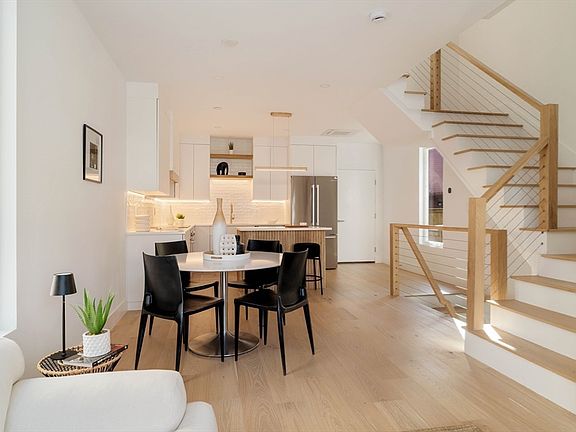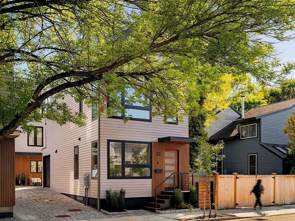 Modern living in the vicinity of Cambridge’s vibrant tech and cultural corridor, Kendall square! This attractive newly built 5-bed 4.5-bath detached home with garage space is thoughtfully designed, capturing natural light through skylights and striking architectural windows, elevating your living experience. The open light-filled living areas feature a Japandi-inspired interior with oak + cable stairway and a polished kitchen with crisp white cabinets, organic blonde wood elements. They expand to the lower-level family room and guest suite with a private back entrance. The 2nd floor offers two designer’s bedroom suites - incl. a primary bed with a deck and double vanity bath. The upper 2 beds with vaulted ceilings, deck and treetop views are perfect for kids' rooms and home office. The 4 baths are bathing beauties with floor to ceiling tiling, floating vanities, rain showers & skylit tub. Walk to T, MIT, public school, green spaces, childcare facilities, top rated restaurants & theater