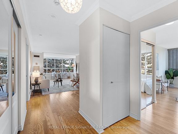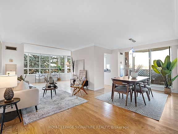 This bright northwest corner suite is the one you've been waiting for! Perfectly situated in the heart of Richmond Hill, this spacious 1289 sq. ft. suite is nestled on the 3rd floor, offering the peaceful privacy of mature trees and lovely views of the building's green space.The thoughtfully designed split 2-bedroom layout with 2 full washrooms and a versatile den/office provides comfort and flexibility for today's lifestyle. The eat-in kitchen is the perfect place to enjoy your morning coffee and read the newspaper. The hardwood floors throughout add traditional warmth and charm. You'll love the large ensuite laundry and storage room. Oversized closets throughout. Step out onto your north-facing balcony and unwind in your own private retreat. This highly sought after, well-maintained building offers wonderful amenities and social events creating a special sense of community - play bridge or billiards, swim in the indoor pool and hot tub, enjoy a game of tennis or shuffleboard, or simply relax in the library or under the gazebo, around the BBQ or on one of the many patios. Entertain family and friends in the party room. For overnight guests, there are two convenient guest suites available. This special suite includes a 2-car tandem parking space. Prefer to leave the car at home? You're just a short block walk to Yonge Street and all that it has to offer. Three plazas across the street also offer everything you need - restaurants, groceries, banks, hair salons, pharmacies, and more. Conveniently located near public transit and GO station, with parks and walking trails just a stroll away. Enjoy the best of both worlds - quiet comfort in a special community and urban convenience. This location truly has it all. A wonderful place to call home!