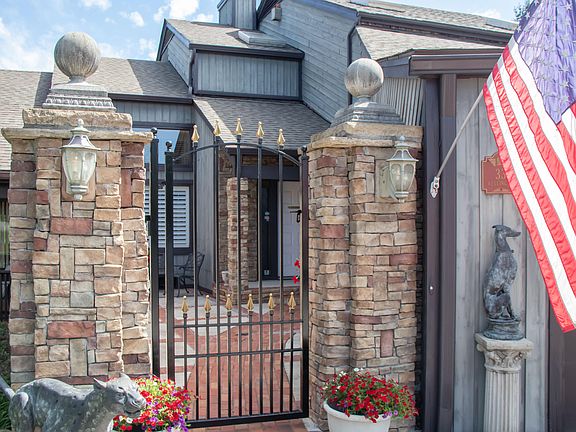 Lakefront condo built by premier builder, Grady Hensley. Lake views from all living areas. Luxury main level living indoors, casual lakefront living outdoors. Step into private courtyard. Walk into foyer with double coat closets. Enter into the large living room with 18' beamed ceilings, custom walnut built-in cabinets, Italian hand-carved marble fireplace. Spacious dining room has secret china closet. Living and dining rooms open onto large covered deck. Kitchen has granite countertops, Kitchen-Aid appliances, trash compactor, double ovens, wine cooler. Walk-in pantry. Powder room. Main level master bedroom opens onto deck with water views. Master bath shower and soaking tub, large closets. Upstairs master suite has gas fireplace, window seats and his and hers baths and closets. Her bath has soaking tub. His bath has walk-in shower. Oak hardwood floors, plantation shutters, solid wood doors. Safe room. Central vacuum. Loads of storage, plus pull down attic access. Windows replaced in 2020. New garage doors. HOA includes landscaping, regular maintenance and clubhouse amenities: pool, tennis courts and playground. Steps from deck take you to the lake so you can launch your paddle board and kayak from your own backyard.