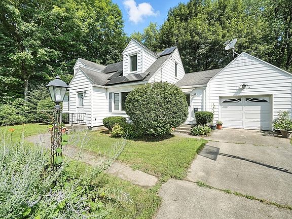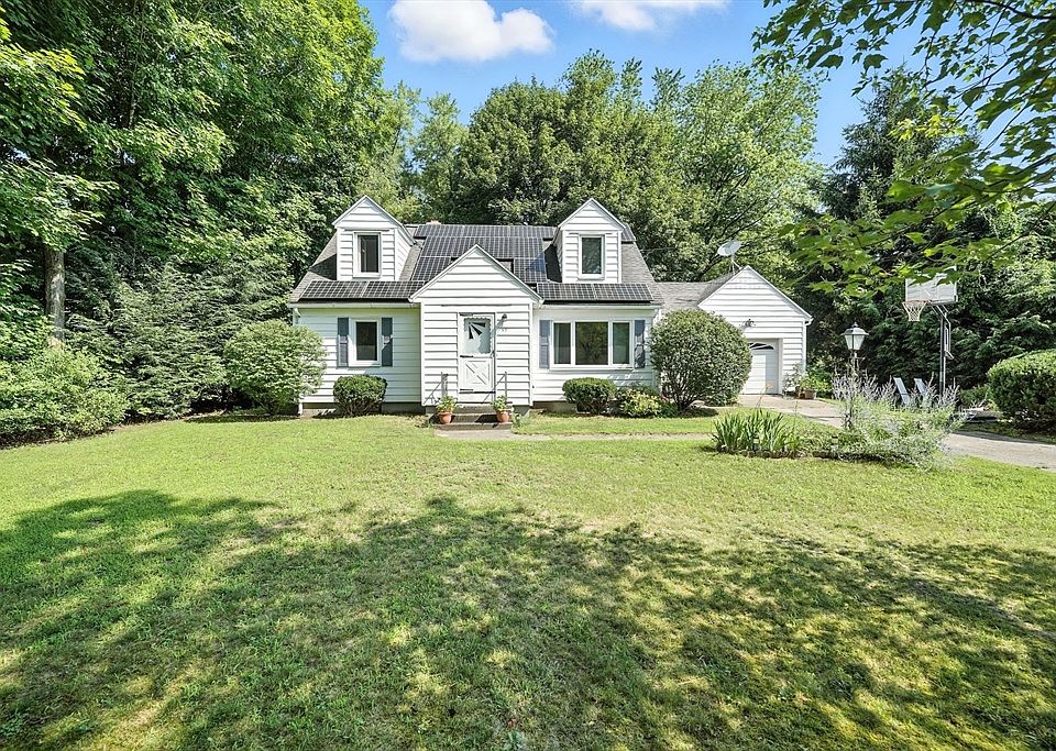 Expect to be impressed with this updated Cape-style home, featuring owned solar panels, energy-efficient custom European-style windows, mini-split heating & cooling systems complemented by natural gas heating. The inviting entryway leads to a bright living room, which seamlessly transitions into an open-concept kitchen,dining & sitting area -this space is designed with sliding doors that provide access to the deck, which leads to a private & peaceful flat yard.The main floor is further enhanced with a convenient 1st floor bedroom, office/den, and a full bathroom.Upstairs you'll find 2 nice bedrooms w/ ample closet space & a 3/4 bathroom, plus a Mt. Tom view.This well-maintained, lead safe property is situated on a serene, park-like lot, yet is just 0.6 miles from downtown. Don't forget the outbuilding (w/ electricity, internet & mini-split),which has a beautiful view of the forest & serves as a versatile writer's studio" & retreat -a perfect space to work from home! OFFERS DUE 7/21 4PM