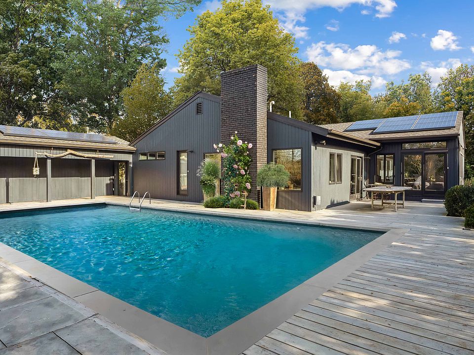 Set on the coveted Wireless Road in East Hampton, this single-story gem offers a wonderous blend of modern luxury and tranquility just 1.5 miles to ocean beaches. With an ideal locale moments away from East Hampton village, 33 Wireless Road also offers proximity to high-end shopping and dining, as well as renowned golf courses and tennis clubs. Boasting 3 bedrooms and 3.5 bathrooms within 2,250 SF the residence is situated on a 0.5-acre parcel. Light-filled interiors with vaulted ceilings create an inviting ambiance, complemented by a fireplace for cozy evenings. The modern chef's kitchen features top-of-the-line stainless steel appliances, while the dining room bathes in ample natural light. The primary en-suite is a sanctuary with radiant heated floors, a soothing soaking tub, and a private walkout to the outdoor deck. Step outside to discover an entertainer's dream with decking throughout, an outdoor dining area, and a heated pool for relaxation. Experience the epitome of Hamptons living in this stylish and modern sanctuary.