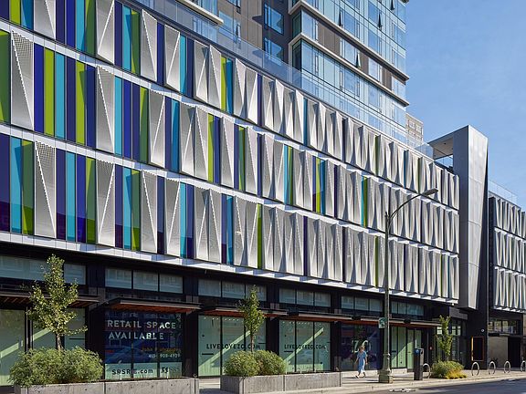 - Exterior features: Bike Friendly secure parking and repair station, Concierge, Conference Room, Dialed closet systems, Electric car charging stations, Entertaining Kitchen and Dining Table, Free green cleaning supplies forever, Garden, Package Receiving, Pet Friendly outdoor play space & dog spa, Planet-friendly dry cleaning, Private terraces*, Public artwork program, Resident event program for mingling, Spacious floor plans