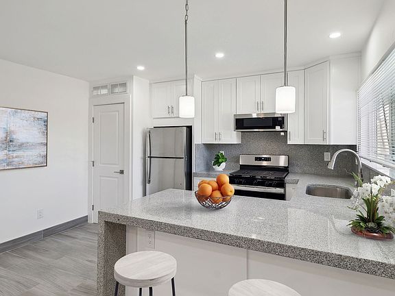 Welcome to Palm Terrace Apartments in El Cajon, CA. This fully remodeled unit offers modern comforts, including air conditioning and heating in the living room and both bedrooms, stainless steel appliances, granite countertops, new cabinets, a completely remodeled bathroom, and beautiful porcelain tile throughout the unit. The apartment also features an in-unit washer and dryer for your convenience.
