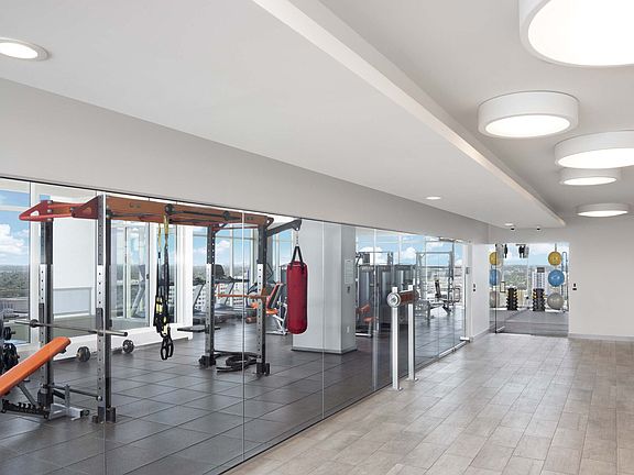 - Exterior features: 24-hour emergency maintenance, Balcony, Bicycle storage, Business Center, Co-working spaces throughout community, Concierge, Conference Room, Corner apartment, Courtyard, Floor to ceiling windows, High impact energy efficient windows, Housekeeping, Kitchen island, Large soaking tub, Media Room, Non-smoking amenity areas, Package Receiving, Parking, Parking Available, Pet Park, Planned social events, Professional landscaping, Quartz countertops, Rooftop yoga and group fitness studio, Soft close cabinets and drawers, TV Lounge, Trash chutes on every floor, View Type: East facing view, View Type: East view, View Type: South West facing view, View Type: Upper South East facing view, View Type: Upper South facing view, View Type: West view, Walk-in shower, Wi-Fi in common areas