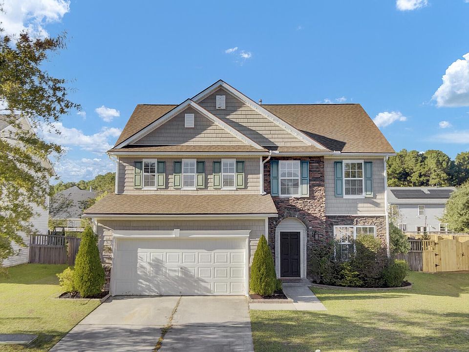 New ROOF Alert. One of the biggest upgrades is already done, giving you peace of mind, added value, and one less thing to think about. Located in the highly desirable Foxbank Plantation, this beautifully maintained home delivers the look and feel of new construction--without the wait or the premium price tag. From the moment you arrive, the curb appeal and professionally landscaped walkway make a strong first impression, leading you into a bright, open floor plan designed for modern living. The main level features a formal living and dining area that flows seamlessly into a spacious family room and an oversized kitchen built for entertaining. You'll find stone countertops, a custom center island, a walk-in pantry, and a sunlit breakfast area that makes mornings feel effortless.Upstairs, you'll discover two guest bedrooms, a flexible loft space, and a generous primary suite complete with a massive walk-in closet. Out back, a covered patio offers the perfect spot to relax or dine outdoors, while the fully fenced yard provides privacy and direct access to a shared green space with swings and a peaceful pond ideal for kids, pets, or quiet evenings. Foxbank Plantation is known for its community-centered lifestyle, with standout amenities including a new state-of-the-art elementary school, a large play park, and a resort-style pool overlooking a 67-acre lake. A new lap pool is also set to open soon, adding even more to love. Conveniently located near major employers like Google, Volvo, and Joint Base Charleston and just a short drive to Boeing, local beaches, and historic downtown Charleston this home checks every box for comfort, style, and location.