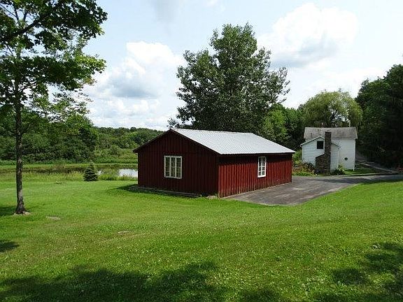 PRIVACY ON A COUNTRY ROAD...with 52 ACRES! Experience serenity overlooking a pretty POND, stone walls and open & wooded VIEWS. E X C E L L E N T HUNTING property! The farmhouse has been lovingly modernized with an OPEN CONCEPT floor plan including a vaulted living room ceiling with STONE FIREPLACE, modern country kitchen with COUNTER SEATING and a very SPACIOUS MASTER BEDROOM on the first floor( would make a great Family Room, also!) Two LARGE BEDROOMS upstairs with HOME OFFICE space (could be bedroom) and LOTS OF STORAGE! Great bathrooms on each floor have been updated( upstairs NEW in '07). NEW DECK ('10). ALL REASONABLE OFFERS CONSIDERED!