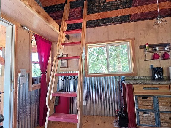 Beautiful Cabin with a large deck for entertaining, overlooking a pine forest. The Cabin has a kitchen area and a loft for sleeping. A wood stove heats the Cabin. Also included is a custom-built outdoor sauna/shower with on-demand hot water. The property features plumbing in the walls for the kitchen area and installed wiring that can be used for solar or generator power. The nicely treed property creates a very private feel, with no visible neighbors within view from the Cabin. The water is hauled in at this time by the owner, or there are water delivery services as well. There is plenty of room for RV parking and a circular driveway, making it easy to turn around. The county maintains Bench Creek Rd for year-round access.