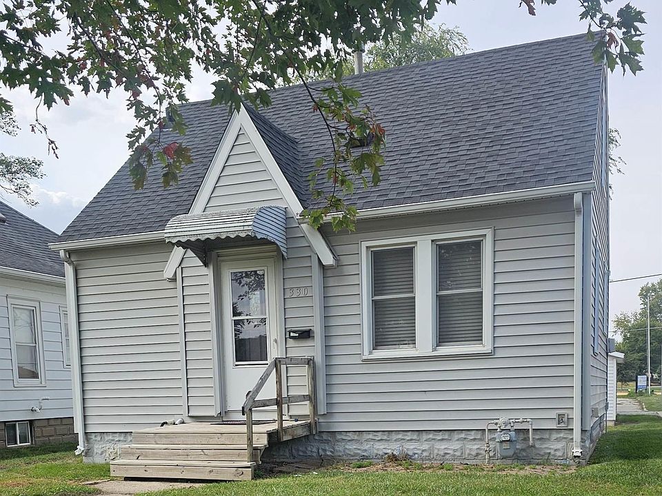 Move in ready! This freshly painted 3 bedroom features an oak kitchen, with appliances included, along with an eating peninsula. One bedroom on the main floor and 2 bedrooms up with one being 10 x 8'1 and the other 9'11 x 9'7 ,both with built in storage. Remodeled bath with tiled shower/ tub. Oversized single garage (352 sq ft) was built in 2003. Most all windows are vinyl replacements and exterior is maintenance free vinyl.