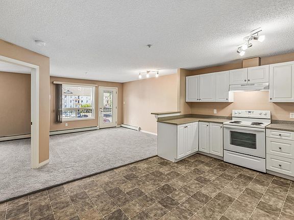 Steps away from Clareview Station! Welcome to this bright 1-bedroom, 1-bathroom condo in a well-managed building. Freshly cleaned and featuring brand new carpet, this move-in-ready home offers comfort, convenience, and plenty of natural light with its desirable south-facing exposure. The spacious, open-concept layout includes a large white kitchen with ample cabinet and counter space making it perfect for cooking or entertaining. The living and dining areas flow seamlessly, creating an inviting space to relax or host friends. The in-suite laundry adds everyday ease, while the generous bedroom and full 4 piece bathroom provide a cozy and functional retreat. You'll love having access to the building’s fitness room, perfect for staying active without leaving home. The unit also includes one assigned parking stall, with visitor parking available. Ideal for first-time buyers, downsizers, or investors. This condo combines low-maintenance living with great amenities in a fantastic location.