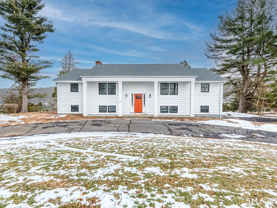 This fully renovated raised ranch offers a rare blend of modern design, quality craftsmanship, and a truly special setting. Featuring 3 beds and 3 full baths, every inch of this home has been thoughtfully remodeled from top to bottom. Major upgrades include a brand-new septic system, new roof, thermal pane windows, new electrical panel, and a brand-new rear deck, providing peace of mind for years to come. Designed for today's lifestyle, the home features an open floor concept where upon entry, floor to ceiling windows immediately draw you in flooding the space with natural sunlight and creating an airy, inviting atmosphere. The main living area is anchored by a beautiful fireplace, perfect for both everyday living and entertaining. Refinished hardwood floors flow seamlessly throughout the main level, leading into a stunning custom kitchen with soft-close cabinetry, quartz countertops, and stainless steel appliances. The primary bedroom suite serves as a private retreat, offering his-and-hers closets and a spa-inspired bathroom with dual vanities, Bluetooth mirror, walk-in shower, and soaking tub. All three bathrooms have been completely renovated with high-end finishes. The finished lower level adds over 900sf of additional living space and features a 2nd fireplace, new flooring and sliders to a covered walkout patio. Overlooking a Christmas tree farm with scenic views of Powder Ridge, this move-in-ready home offers rare privacy and a truly unique setting.
