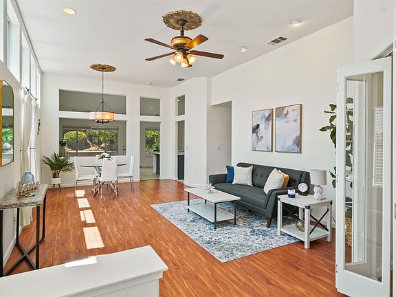 Here's your new home sweet home! This clean, move-in ready 4 bdrm, 2 bath, 1-story gem is tucked away on a peaceful culdesac in the friendly Glen Eagle Ranch neighborhood. Its open floor plan boasts cathedral ceilings in the living and family rooms and primary bdrm, creating a light-filled, spacious atmosphere. The kitchen is ready for culinary creations and features quartz counters, gas rangetop, built-in electric oven, and dishwasher. Enjoy cozy evenings by the fireplace, the convenience of an in-home laundry closet with washer and dryer included, and a primary suite featurng dual sinks and a walk-in closet. Outside, beautifully landscaped yards showcase mature foliage and multiple producing fruit trees, making this property both inviting and abundant. With a 2-car garage and dual-pane windows throughout, this home proclaims It's the one!