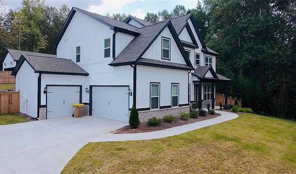 CRAFTSMAN / FARMHOUSE 2.5+ ACRES A PERFECT BLEND OF LUXURY AND LOCATION! This stunning open-concept Craftsman / Farmhouse showcases luxury finishes throughout and a design made for both entertaining and everyday living. The gourmet chef’s kitchen boasts stainless-steel appliances—including a 48" range with double ovens, built-in refrigerator, dishwasher, and drawer microwave—plus a large working island, farmhouse sink, premium granite countertops and backsplash, custom hood vent, walk-in pantry, mud bench, and elegant under-cabinet lighting. The spacious great room features a coffered ceiling, custom fireplace with built-in bookcases, and seamless flow to the kitchen. A formal dining room with chair-rail trim, built-in butler’s pantry with beverage fridge, a full guest suite, and a versatile study/playroom complete the main level. Upstairs, a beautifully crafted staircase leads to an oversized owner’s retreat with tray ceiling, custom lighting, hardwood floors, dual vanities plus a dedicated makeup vanity, a spa-style shower with multiple shower heads, and dual custom closets. A private teen/in-law suite, three additional large bedrooms with generous closets, a double-vanity bath with privacy door, and a laundry room with wash sink complete the upper level. Additional highlights include hardwood flooring on the main level and owner’s suite, designer paint colors, upgraded tile baths, high-efficiency HVAC, and countless custom trim and lighting details. Outside, enjoy a private extended covered patio with ceiling fan, a beautifully landscaped fenced backyard, and ample parking with an attached 3-car garage plus a detached 2-car garage/workshop. Property is zoned for livestock. All this just minutes from I-85, Château Élan, top-rated schools, shopping, dining, and medical care—a perfect blend of luxury and location.