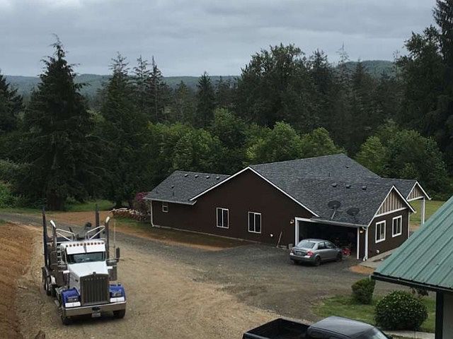Rambler with 4.3 acres a pond, 42x48 ft shop with full bath and rec room, wood shed and quietly secluded yet close to all amenities with natures wildlife strolling through daily. Driveway access runs allway through property.