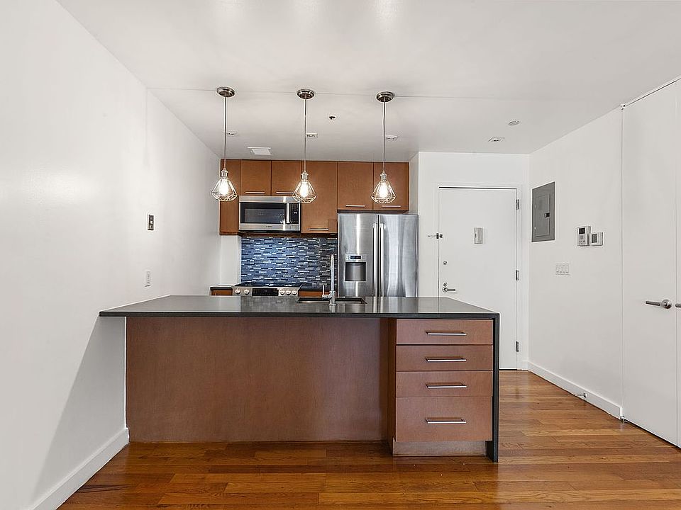 Welcome to Apartment 5B, a stylish one-bedroom home offering comfort and functionality. This bright, high-floor residence features an open kitchen with breakfast bar, full-size appliances, and a spacious living area that opens to a private terrace with open views.