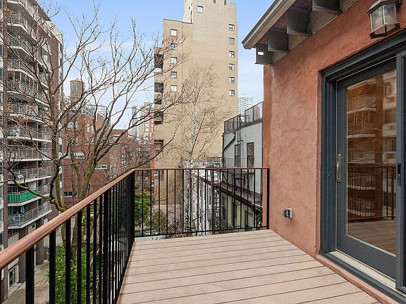NO PETS. *The Next showing is at the OPEN HOUSE.* 1,000 sq ft, FULL FLOOR, 1 bedroom + office, 2 bathroom home with large balcony in a Townhouse. *Quiet, top floor, no neighbors above.* Four flights up from the street level. Note the smaller bedroom works well for an office. Available for an immediate move in, this home has outdoor space and a *Washer Dryer (combo unit).* Bright and Sunny with 6 large windows south and north views. Renovated with very high ceilings, new hardwood floors. Central mini split AC. The 21' wide Townhouse has a set back Garden entrance. It is 4 units and meticulously maintained. *Broker commission paid by tenant.* All Utilities paid by the tenant. No elevator. 1 year lease. Sq ft is approximate. Nearby: Fairway Market, Trader Joes, Target, AMC Movie theater. 7 mins to East River Ferry at 34th. Citibike stations at 1st and 2nd Ave.