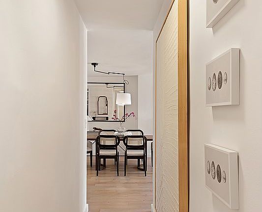 As you enter this home, you are greeted by a wall of massive picture windows showcasing open views to the North, capturing a glimpse of the East River. The entire home is bathed in glorious sunlight, and brand new floors which run throughout the entire apartment. The sprawling living/dining room easily accommodates full-sized furniture and a traditional dining table, perfect for those who like to entertain or simply enjoy extra living space. There is a wall of deep walk-in closets which can alternatively be converted into a home office setup or remain as they are for expanded storage space.