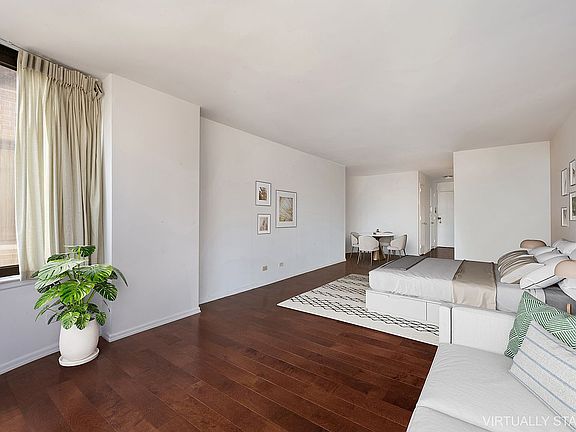 Midtown East studio in a full-service doorman condo with spectacular open city and water views.