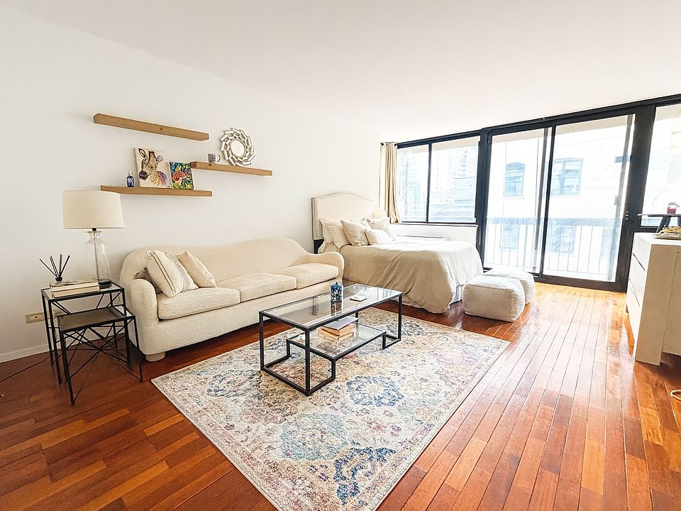 Enjoy bright sun all day long in this south-facing, spacious loft-like unit. Take your morning coffee on the private balcony with charming views. Generous closet space throughout, sleek high-end stainless steel appliances in the kitchen, marble bath and laundry room on the floor. Apologies, no pets permitted for renters.