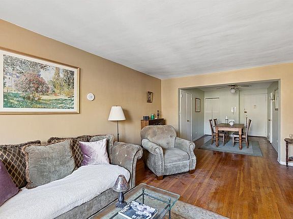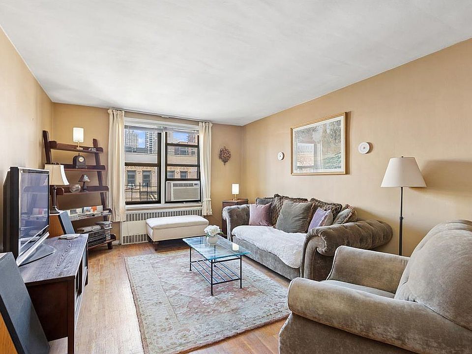 Welcome to #7G! Upon entering, you're greeted by large north-facing windows that fill the home with natural light, setting the stage for a bright and welcoming environment. Original wood floors run throughout, adding a touch of timeless warmth and elegance, and offering the perfect foundation for a future renovation.