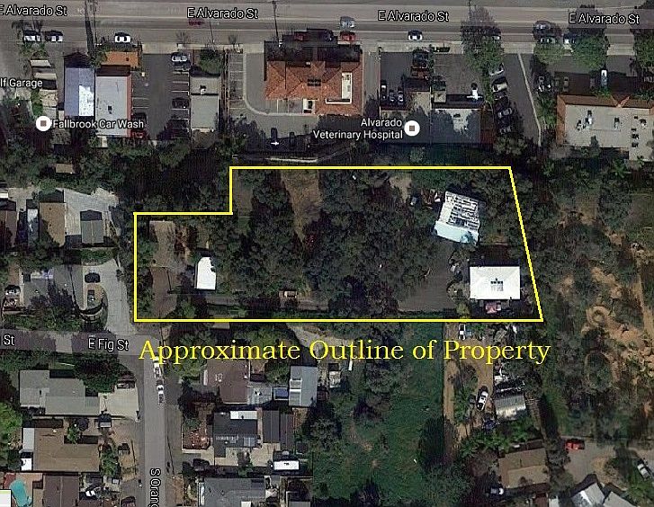 FALLBROOK PROPERTY WITH 4 DWELLING UNITS PRICE REDUCTION; Now $1,060,000, down from $1,185,000. Three adjoining parcels, 1.2 acres total. Bottom parcel contains duplex, middle parcel is vacant land, top parcel has 2 story townhouse and 2 story main house. All units are rented for monthly income of $5,195. Property overlooks downtown Fallbrook in a quiet residential area. Property is zoned RU-15, allowing 15 units to be built per acre. All units are on city sewer and water, corner of Fig and Orange. The Main House is a 4 bedroom 3 bath 2,250 ft ² house on two levels with central heat and air-condition, solar hot water panels on roof. The two level townhouse, 1,200 ft², has a 10' x 14' deck, central heating, air-condition, one main bedroom with bonus room, two baths, two washers, two dryers and two refrigerators with a fenced backyard. Attached is a huge 600 ft² two car garage with shop area and a separate 250 ft² lockable storage. Duplex units are leased, 850 sq ft total, and are on natural gas. They each have an air-conditioning unit. One is a studio apartment, the other a one-bedroom with bonus room. Has covered car-port and storage. FOR SALE BY OWNER VERNON TRITCHKA 760-586-4644