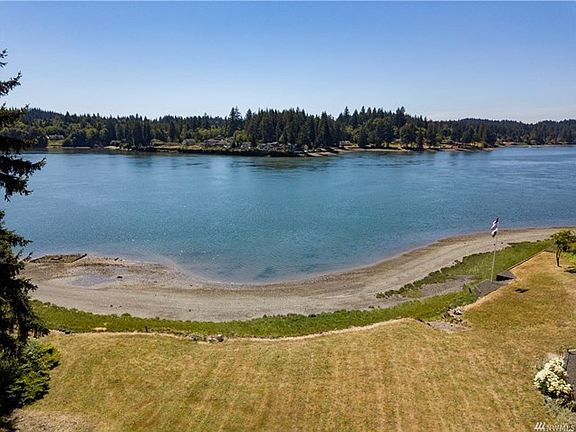 Down long driveway to home, property starts at Libby Road. Terrific 136 feet salt waterfront with tidelands & stone bulkhead. Athletic court, green house, oriental garden. Newly painted kitchen w/beautiful brick arch bar between kitchen & dining room. Large master bedroom with built-ins and view. Follow down to the house and glimpse an expanse of waterfront to enjoy. Several decks, a patio and beautiful lawn to take in that view! This home includes sun room with hot tub (tenants must maintain hot tub if they want to use), butler pantry with wood stove. Daylight Basement. 2 large garages, one with large shop (Owner is not opposed to a home-based business). Private setting on 6.25 acres. RV parking, room for all of your water toys.