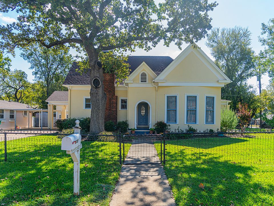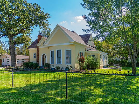 Historical Victorian three-bedroom and two-bathroom art deco home in Stephenville Texas. This pristine home (newly painted exterior) has preserved much of its original detailing such as the scrolled plaster work on the ceilings, traditional elements with classical trim, antique doorknobs, and sturdy hardwood floors throughout. Kitchen is efficiently set up. Dining room has beautiful plush walls. There is an office-den (with built in desk and day bed) could be used for a fourth bedroom. Off the living room you can find a fun extra room that could be used for crafting or storage. There is a two-story carriage house (used for storage). Also, located on the property is an ADU studio (pink) cottage newly remodeled with kitchen, utility closet with washer, dryer and a full bathroom. Cottage is rented until September 30, 2026. The large lot is beautifully landscaped with mature trees, sprinkler system, two outdoor patios, and an outdoor firepit. House and carriage house exterior has been freshly painted. Property location is ideal: blocks from the Stephenville Town Square, shopping, restaurants, coffee shops, art galleries, city park, Bosque River Trail, and Tarleton State University. Property is Commercial Zoned B-3 Business Central District; it is income producing. Truly a must see schedule your private showing today.