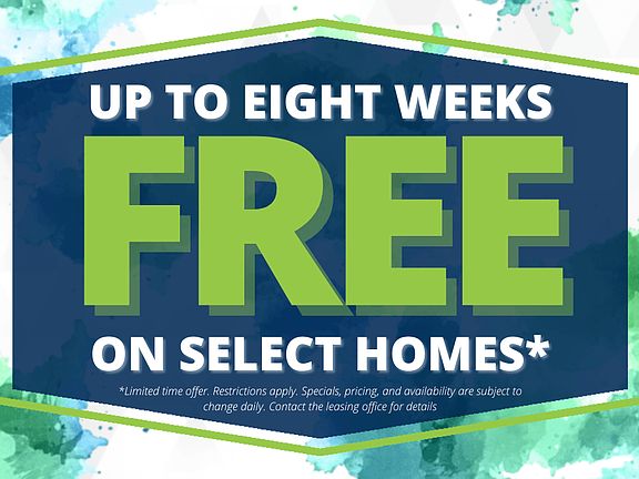 - Special offer! Up to Eight Weeks Free on select homes! *Limited time offer. Restrictions apply. Specials, pricing, and availability are subject to change daily. Contact the leasing office for details