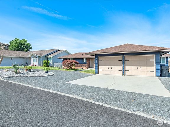 Gorgeous views of the lake and Steamboat rock, this single story home has it all! New flooring, remodeled bathrooms, fresh interior/exterior paint, and updated throughout. Bay of windows show spectacular views and sunsets to impress. Beautiful brick propane fireplace in living area with two primary suites on either end of the home. Two car garage with circular driveway for easy maneuvering. You are only minutes to Banks Lake, Lake Roosevelt and Rufus Woods for fishing and recreation, this is the perfect spot for your out of town retreat or to call home.