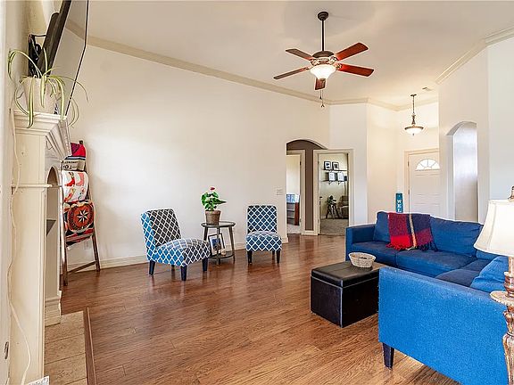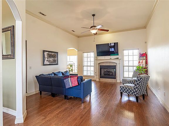 Double garageOutside patioWalk in closetOpen floor planGas fireplacePrivacy fence backyardNatural light dining area